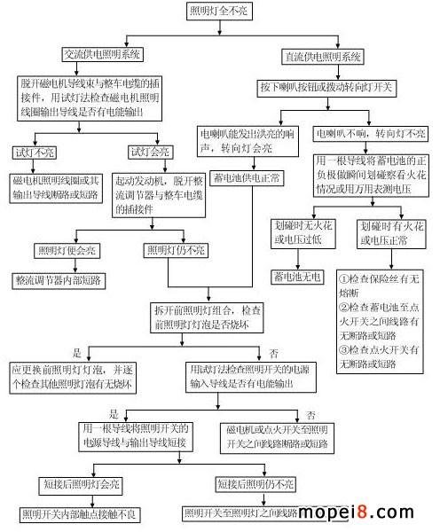 摩托車檢修--照明燈全不亮故障診斷流程圖