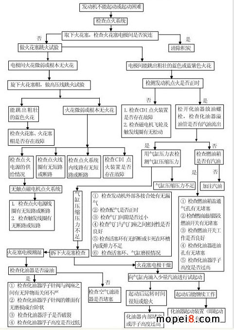 摩托車維修論壇--發(fā)動機(jī)不能啟動或啟動困難故障診斷流程圖