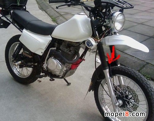 的改裝:在玩越野的很多同學中,有很多買越野是拿來代步的或者小長途摩旅的,而不是專門下場地的,所以騎越野車出去只要路上有點點雨水,就會搞得滿身泥漿,很是難堪。車速一快,泥漿還是要從前面翻上來,搞得自己像落湯雞