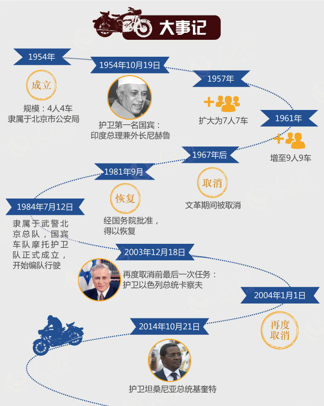 坦桑尼亞總統(tǒng)基奎特10月21日抵達(dá)北京,開始對中國進(jìn)行國事訪問。在從首都機(jī)場前往釣魚臺國賓館的國賓車隊(duì)中,出現(xiàn)了摩托車護(hù)衛(wèi)隊(duì),所用車型為國產(chǎn)春風(fēng)650G摩托車。建國以來,我國曾經(jīng)實(shí)行過摩托車護(hù)衛(wèi),這一次重新恢復(fù),恰逢摩托車護(hù)衛(wèi)隊(duì)成立60周年。