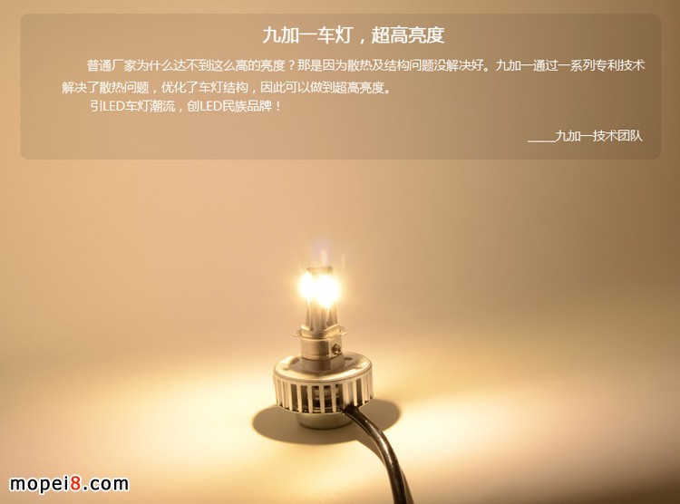 無論是修車行的師傅,摩托車發(fā)燒友,還是普通車主,都會驚嘆于九加一LED大燈的超高亮度!但九加一車燈帶給你的更大驚喜,是她的安全穩(wěn)定;保障你的行車安全!這絕對是你夢寐以求的,物超所值的車燈!