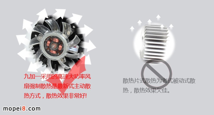 3.28孔散熱器+高速大功率風(fēng)扇強(qiáng)制散熱,6500圈/分鐘,極速散熱,有效延長光源壽命,使光衰非常非常低。