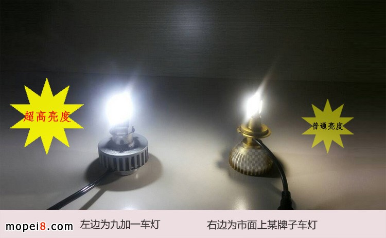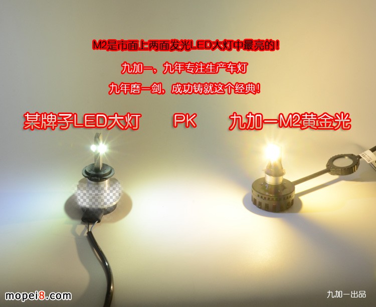 01:某牌子LED大燈與九加一LED大燈M2對比