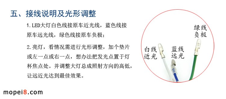8.本燈為直流供電,用在直流摩托車或大燈端電壓為12V的電動車上;如果是交流車,或者大燈端電壓高于12V的電動車就不能用。