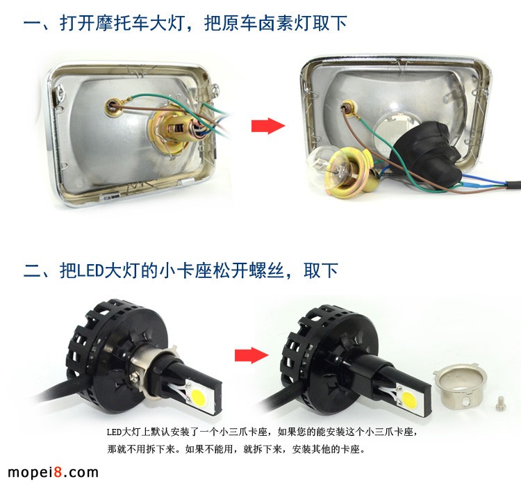 (摩托車大燈改裝看似簡單,其實是個技術(shù)活!安裝上去容易,要改裝出好效果其實并不容易。因此,為達(dá)最好效果,建議拿到專業(yè)摩托車改裝店進(jìn)行改裝;經(jīng)改裝店師傅改裝的效果會更好。不要自己裝!!