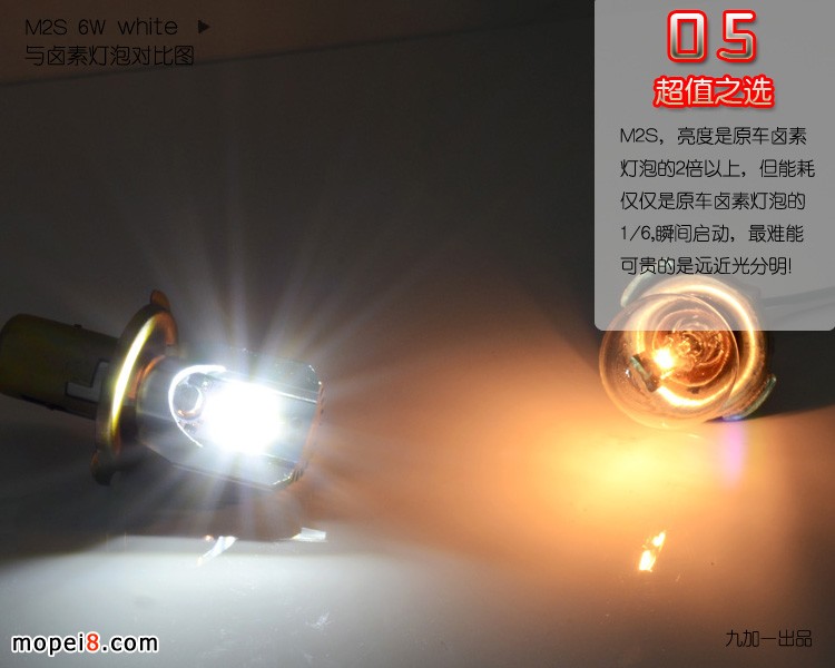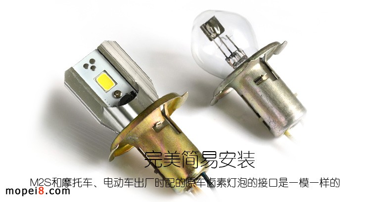 答:九加一LED大燈M2S為即插即用型車燈,直接替換原車鹵素燈泡。就是把原車鹵素燈泡取下來,然后換上M2S就可以了。只要您的車是直流摩托車或電壓不高于12V的電動車,可不咨詢客服直接拍下付款。(不用啟動發動機就可以打開大燈的是直流車)