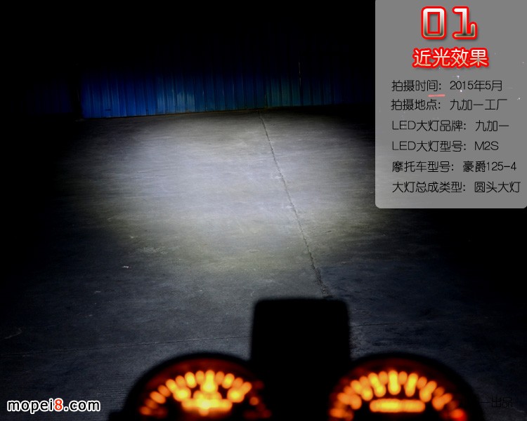 5.本摩托車大燈光通量(亮度)為800流明,是原車鹵素燈泡亮度的2倍以上,鋪路寬而均勻(不會像手電筒那樣只照一點),遠近光分明,普通照路足夠有余,但若是發燒友級車主想要超級亮效果的,可以選擇最亮的摩托車LED大燈M3S