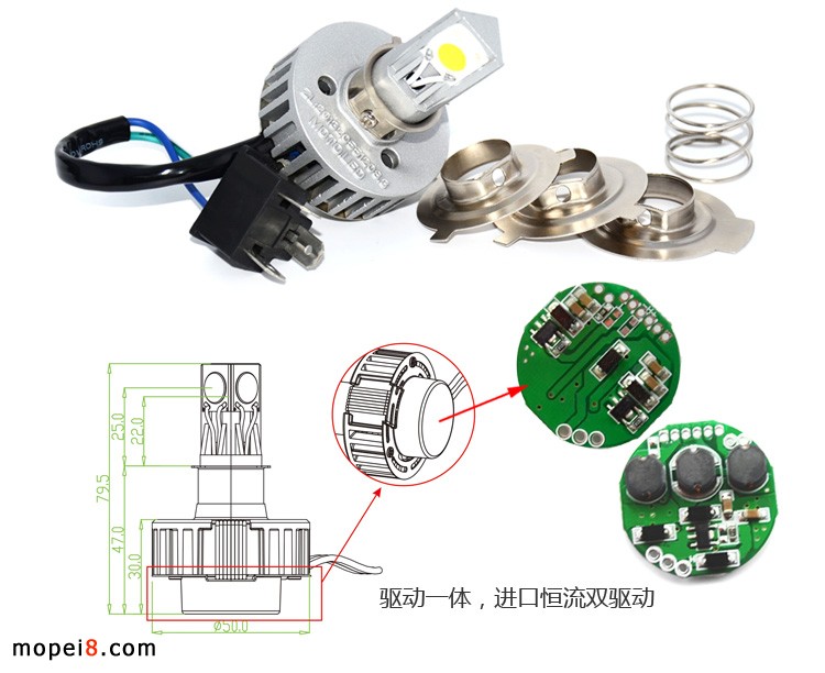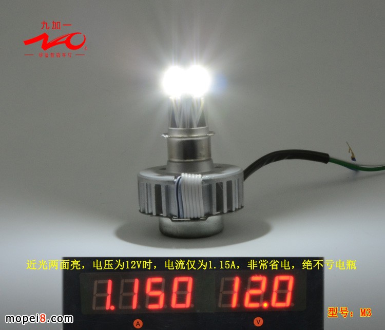 1、壽命:本LED摩托車大燈(型號:M3)壽命約30000小時,一般氙氣燈壽命約3000小時,一般鹵素燈壽命約300小時,也就是說: