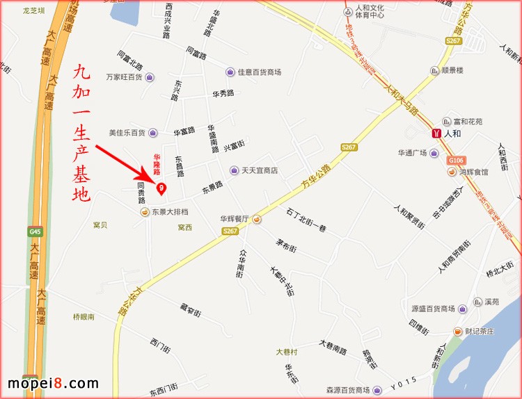 (行車路線:廣州地鐵三號線人和站C1出口,然后5分鐘車程可達東華工業(yè)區(qū)華隆路1號九加一生產(chǎn)基地)