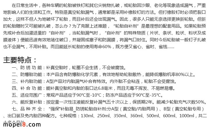 產品關鍵詞: 輪胎自補液 輪胎充氣自補液