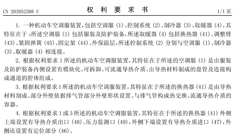 簡要說明:一種具有防寒防暑調節溫度,同時具有安全防護功能的機動車空調服裝置。本裝置包括空調服(1)、控制系統(2)、制冷器(3)、取暖器(4)。所述空調服(1)是由內部設置有流通導熱介質裝置的服裝和防護裝備組成,具有傳導溫度、安全防護作用的調溫防護裝備。控制系統(2)采用手動或遙控及自動功能控制調節溫度。制冷器(3)采用電子制冷片構成,實現降溫防暑作用。取暖器(4)與排氣管進行熱交換,實現取暖御寒。空調服裝置安裝簡單,使用方便,為駕乘人員安全行駛提供保障。