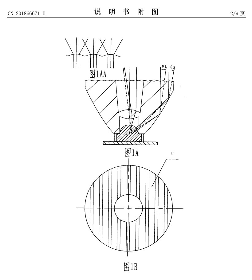 簡要說明: 本實用新型提出一種汽車、摩托車LED前照燈,其包括LED燈、燈板、燈座、燈片和后殼和透明外罩。燈板上并列布置有至少三個所述的LED燈,其中至少有一個LED燈的出射光線與燈板平面的垂直線之間呈0.5°~22°夾角,且與燈板平面的垂直線呈所述夾角的LED燈中,至少有一個LED燈的杯頂表面為豎直排列的柱面形式,形成前照燈的近光部分。燈架上其余的LED燈的杯頂表面為平面,同時,至少有一個LED燈的出射光線與燈板平面的垂直線重合,形成前照燈的遠光部分。本前照燈通過合理設計二次光學系統使LED前照燈的出射光亮度和成型光斑均達到理想的要求,消除安全隱患,并可降低功率,提高照度,不發熱,壽命長。
