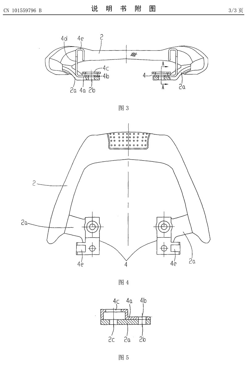 簡要說明: 本發明公開了一種摩托車頭盔防盜裝置,包括車架(1)、后扶手(2)和座墊(3),其中座墊(3)安裝在車架(1)的后部,后扶手(2)的前端通過兩個后扶手支耳(2a)固定于車架(1)的尾端,在所述后扶手支耳(2a)上固定有掛鉤(4),所述座墊(3)的后部將所述后扶手支耳(2a)及掛鉤(4)罩入其中。本發明在不占用置物箱空間的前提下,能方便摩托車頭盔及其它物品的臨時掛放,并且防盜效果良好,具有構思巧妙、結構簡單、實施容易等特點。