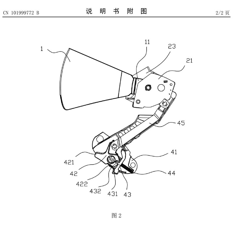 簡要說明:本發(fā)明公開了一種帶有雙重護(hù)目鏡的摩托車頭盔,包括外殼和固定在外殼內(nèi)的內(nèi)襯,所述外殼前部設(shè)置有開口,所述開口外覆蓋有活動(dòng)安裝在頭盔外殼上的外鏡片以及活動(dòng)安裝在外殼和內(nèi)襯之間的內(nèi)護(hù)目鏡,其還包括左、右底座組件和用于控制內(nèi)鏡片開合的內(nèi)鏡片控制組件,所述內(nèi)鏡片控制組件其包括推手蓋以及設(shè)置在推手蓋上通過齒槽互相嚙合的內(nèi)鏡片推手和內(nèi)鏡片開關(guān),其中內(nèi)鏡片推手端部通過連桿與內(nèi)鏡片的尾端活動(dòng)連接。此摩托車頭盔不僅結(jié)構(gòu)簡單,使用方便,而且能有效地減少了駕駛員在駕駛時(shí)開啟關(guān)閉內(nèi)護(hù)目鏡的安全隱患。 |
